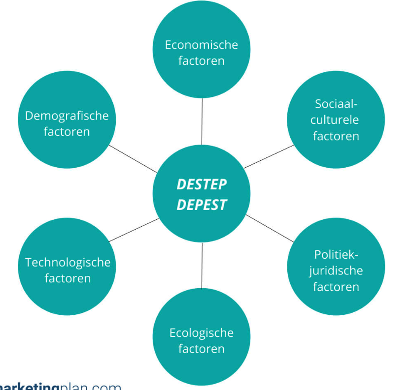 De DEPEST analyse is het bekendste hulpmiddel bij de externe analyse van macrofactoren. Hieronder vallen demografische, economische, politiek-juridische, ecologische, sociaal-culturele en technologische factoren. Samen vormen deze factoren de afkorting DEPEST.
